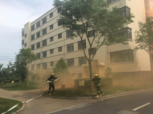 14:20分,園區(qū)公舍2號(hào)宿舍樓冒起滾滾濃煙,隨即刺耳的火災(zāi)警報(bào)聲響徹園區(qū),義務(wù)消防戰(zhàn)斗人員接到指示立即啟動(dòng)消防三輪車奔赴火災(zāi)現(xiàn)場。不到一分鐘時(shí)間,一至六層的租戶在疏散人員的帶領(lǐng)下掩住口鼻,彎著腰,有序地從宿舍的消防安全通道逃生。隨即,消防戰(zhàn)斗人員按照指示迅速開啟消防水泵對(duì)“起火”后的宿舍樓進(jìn)行快速滅火,救護(hù)人員隨即趕到現(xiàn)場參加救護(hù),演練持續(xù)近五分鐘后圓滿完成。
